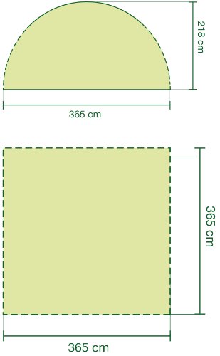 Tente :Application : jardinType : PavillonNombre de chambre : 1Matériau :Exterieur : 100 % polyester enduit 100 % polyuréthaneColone d'eau : < 1500 mmArmature : AcierGabarit :Hauteur entrée : 169 cmEmpreinte (Lxl) : 365 x 365 cmPoid total de la tente : 15.9 kgTaille emballage (Lxl) : 99 x 29 x 31 cm